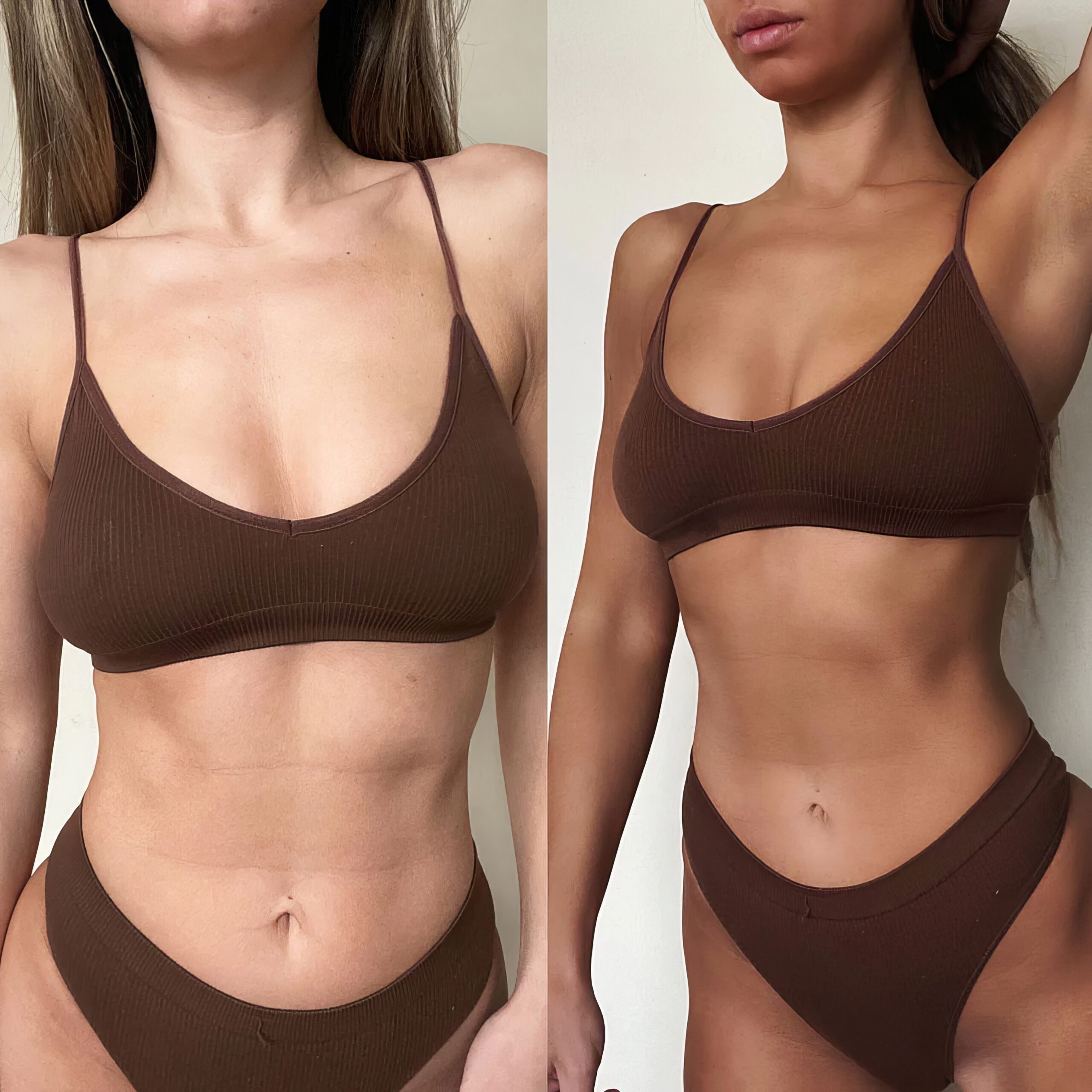 Nie, nie masz się czego obawiać. Mgiełka, którą stosuję może pobrudzić ubranie, ale tylko w czasie między jej nałożeniem a pierwszym prysznicem. Dlatego zalecam, żeby bezpośrednio po zabiegu założyć luźne ubranie. Po zmyciu preparatu po wyznaczonym czasie delikatne zabarwienie może pojawić się jedynie w miejscu, które mocno przylega do ciała typu wewnętrzna fiszbina, co wynika z łuszczenia się naskórka. Musisz jednak wiedzieć, że w takim przypadku wystarczy uprać ubranie w 30 stopniach